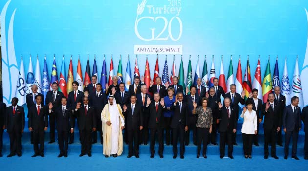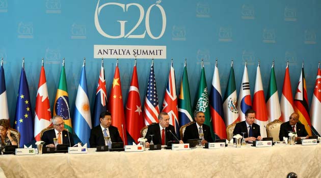 EKONOMİ VE TERÖR İLİKİSİ İkili görüşmeler sonrasında zirve kalkınma ve iklim değişikliği çalışma yemeği düzenlendi. Yemekte konuşan Cumhurbaşkanı Recep Tayyip Erdoğan, Paris'te yaşanan terör saldırılarını şiddetle kınadığını söyledi. Yaşanan terör olayının ekonomi ile güvenlik arasındaki ilişkiyi ortaya koyduğunu ve görmezden gelinemeyeceğini ifade eden Erdoğan, G20’nin asıl ilgi alanın olan ekonomi, siyasi, sosyal, kültürel sorunlarda bağımsız olmadığını kaydetti. "Hele insan hayatından hiç bağımsız değildir" diyen Erdoğan, "Türkiye’nin son 4 aydır yaşadığı terör saldırıları gibi Paris’teki eylemler gibi, Suriye meselesi bunlar en açık ispatıdır. Bu gelişmeler göstermektedir ki, terörizm hepimizin barış ve güvenliğini tehdit etmeye devam ediyor. Türkiye olarak terörle mücadeleye ilişkin işbirliğinin geliştirilmesi noktasındaki kararlılığımızı daha güçlü şekilde ifade edilmesi gerektiğini düşünüyoruz" dedi.