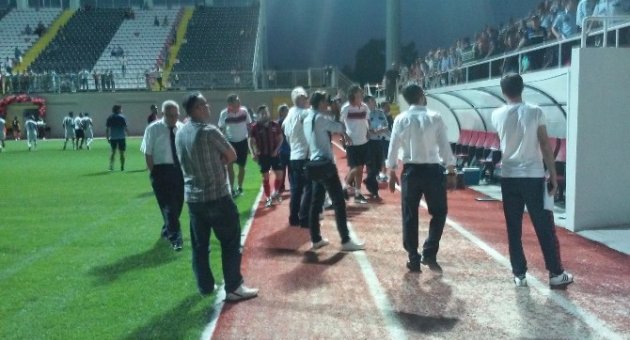 Orta hakem Yasin Karabacak olayların daha fazla büyümemesi için maçı iptal etti. (Tİ - EFE)