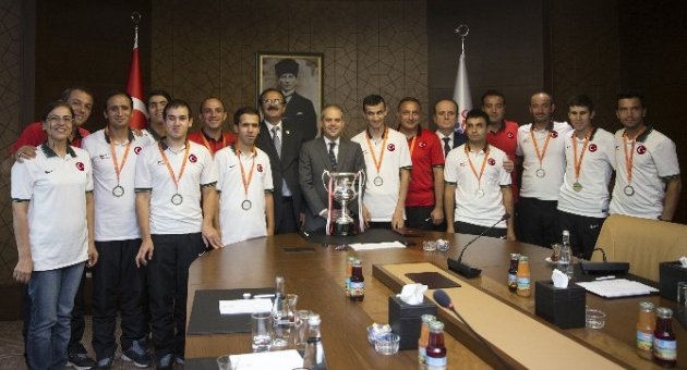 Bakan Çağatay Kılıç, kazanılan tarihi zaferi sporculardan dinledi. Şampiyonluktan dolayı sporcuları tebrik eden Bakan Çağatay Kılıç, "Hepimizi mutlu ettiniz. İnşallah daha farklı turnuvalarda da ülkemizi en iyi şekilde temsil edeceksiniz. Rabbim mahcup etmesin. Herkesin yapamayacağı, ortaya koyamayacağı bir duruşu ve performansı sergilediniz. Hayatın farklı şekillerde yaşanabileceğini, bir takım fiziki engellerin aslında engel olmadığını ortaya koydunuz" dedi.