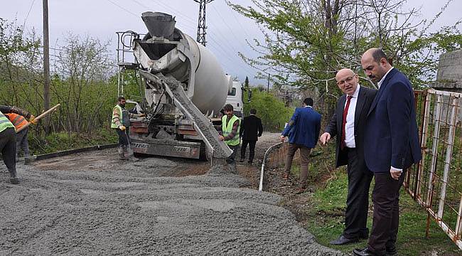 Hüseyinmescit mahallesindeki beton yol çalışmalarında incelemelerde bulundu.
