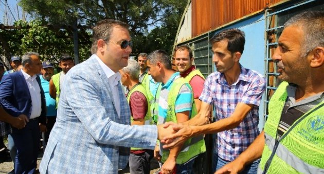 Çalışma arkadaşlarının iş huzuru ve güvencesi için çalıştıklarını söyleyen Başkan Piriştina sözlerine şöyle devam etti: “Sizlerin ve bizlerin çabasıyla her günümüz bayram gibi olur. Bizler sizin iş huzurunuz ve iş barışınız için eşit işe eşit ücret sağlamak için çalışıyoruz. Umuyorum 01 Ocak 2016 tarihi itibariyle bambaşka Buca ve bambaşka Buca çalışanları olacak. Biz esas bayramı 2016’da kutlayacağız.” Başkan Piriştina, şantiyenin ardından belediye hizmet binasındaki çalışma arkadaşları ile bir araya geldi. Yemekhane salonunda çalışma arkadaşlarının teker teker bayramını kutlayan Piriştina, çalışma arkadaşlarından, bayram tatilinin tadını çıkarmalarını ve sevdiklerine sarılmalarını istedi.