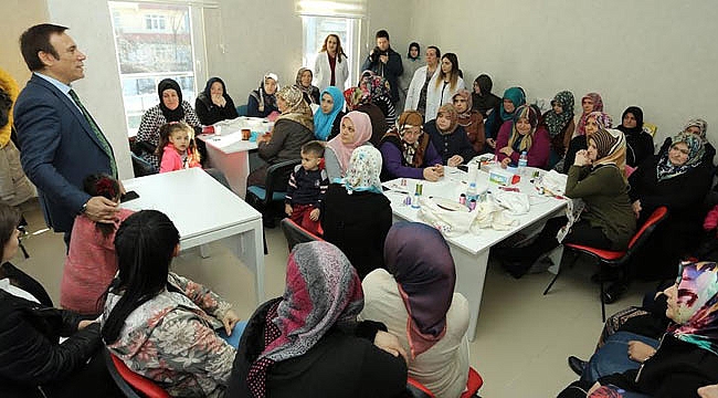 Samsun Canik Belediye Başkanı Osman Genç, Gaziosmanpaşa Mahallesi'ndeki Şehit Ayşe Aykaç Hanımlar Konağı'nda kursiyer kadınlarla buluştu.