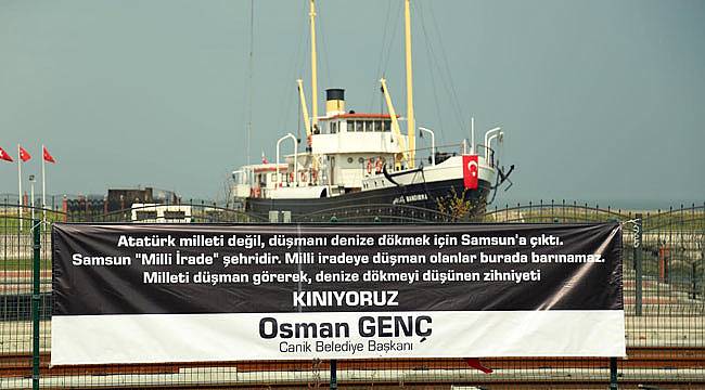 Canik Belediye Başkanı Osman Genç, Milletvekili Hüsnü Bozkurt'a, Atatürk’ün Samsun’a çıktığı Bandırma Vapuru’nun karşısına astığı pankartla tepki gösterdi.
