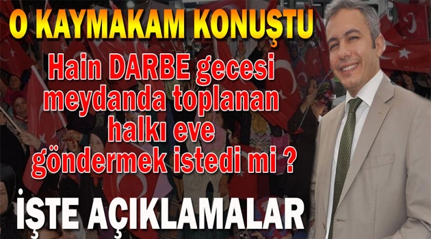 O gün olduğu gibi akabindeki gecelerde de, akşam ezanı ile birlikte Sabaha kadar Demokrasi Nöbetimiz devam etmektedir."Samsun'da büyük tepki çeken hainlere karşı meydanlara çıkan vatandaşları 'eve gönderme' iddialarının hedefindeki Terme Kaymakamı İlyas Gün açıklama yaptı. 15 Temmuz Fethullahçı terör örgütü FETÖ-PDY darbe girişi sonrasında Cumhurbaşkanı Recep Tayyip Erdoğan'ın halkı meydanlara çıkmaya davet etmesinin ardından, gece yarısından sonra Terme Kaymakamı'nın halkı evlerine göndermek istediğinin yer aldığı görüntüler otaya çıkmıştı. Kaymakam'ın darbe girişimi gecesi yaptığı konuşma ile şuan ki açıklaması tamamen farklı.