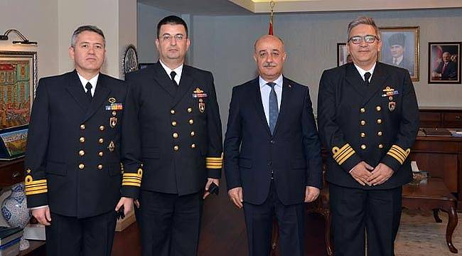 Samsun Valiliği’ne TCG Preveze Gemisi Komutanı Dz. Kur. Yrb. Murat Bozdağ, TCG Yarbay Kudret Güngör Gemisi Komutanı Dz. Yrb. B. Levent Şentürk ve TCG Osman Gazi Gemisi Komutanı Dz. Yrb. Mustafa Avar, Vali Vekili Mehmet Ali Karatekeli’yi makamında ziyaret etti.