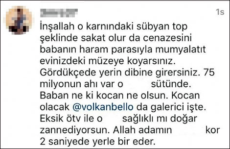 Fatih Terim'in kızı olan şuan bebek bekleyen Buse Terim'e karnındaki bebeğinin ölmesi için beddua da bulunanlar sınırları zorladı. Yazılan yorumlarda ki beddualar insanları pes dedirtti. Buse Terim'e yapılan hakaretlere de bir çok sanatçı, siyasetçi ve taraftarda tepki gösterdi.Bazı yorumlarda da Türkiye Futbol Direktörü Fatih Terim'in aldığı milyonları bulan paraya tepki gösterildi, her bir vatandaşın bu paralarda hakkı olduğuna dikkat çekti.