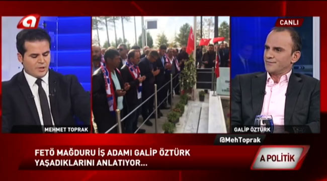 Kanal A Televizyonu'nda Canlı Yayına katılan Metro Holding Yönetim Kurulu Başkanı Galip Öztürk, Fethullahçı Terör Örgütü'nün (FETÖ) hain oyunlarını anlattı, kendisine nasıl kumpas kurulduğunu kamuoyuyla paylaştı.Öztürk, FETÖ'nün 2010 yılından bu yana kendilerine para vermediği ve düzenlerine 'hayır' dediği için Pensilvanya'dan düğmeye basıldığını ve terör örgütü liderinin bilgisi dahilinde sahte delillerle cezaevine girdiğini söyledi.