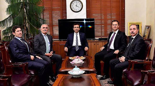 Samsun Büyükşehir Belediye Başkanı Yusuf Ziya Yılmaz, eski Samsun Valilerinden şimdiki Diyarbakır Valisi Hasan Basri Güzeloğlu'nun yıllar sonra yeniden belediyede ağırladı.