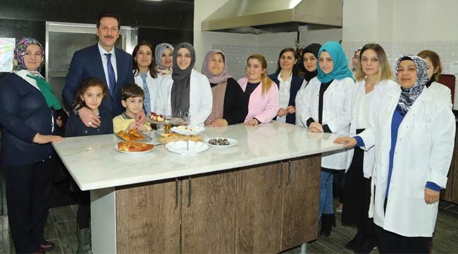 Belediye olarak kadınlara pozitif ayrımcılık yaptıklarını ifade eden Başkan Erdoğan Tok, " Göreve geldiğimiz günden bu yana kadınlarımızla ilgili çalışmalarımızı sürdürmekteyiz. Hanımlar Lokalimizde yüzlerce kadınımız tesisimizin tüm imkanlarından faydalanarak sosyal yaşamın içerisinde aktif bir şekilde yer alıyor. Kültür merkezlerimizde bayanlar, çeşitli branşlarda kurs görmekte ve el becerileri kazanmaktadır. Kadınlarımız için mutlu ve huzurlu bir aile tesis etmek için “Aile Okulu” eğitim seminerlerimizi ve söyleşilerimizi sürdürmekteyiz. Mahallerde parklarda oluşturduğumuz alanlarda kadınlar fitness kondisyon aletleri ile sağlıklı yaşam için spor yapabilmektedir. Yine Baruthane Mahallesi Ihlamur Bulvarı üzerinde bayanları da düşünerek istifadelerine sunacağımız onların ders yapabilecekleri, ibadet yapabilecekleri Selçuklu mimarisine uygun Camii ve Külliye inşa ediyoruz. Son olarak yaptığımız 'Anne Okulu' projemizin tanıtımını yaptık. Her Anne Bir Okul sloganı ile toplumumuzun temelini oluşturan aile kurumunun temel taşı, değerlerimizin temsilcisi, taşıyıcısı ve koruyucusu olan annenin eğitimini önemsiyoruz. Dünyaya gözlerini açan yavrularımızın ilk öğretmeni olan annenin eğitimi toplumun eğitimdir. " dedi.