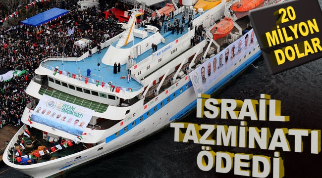 Gazze'ye yardım götüren Mavi Marmara gemisine saldıran ve 10 Türk'ün şehit edilmesiyle sonuçlanan olayda, 6 yıl sonra İsrail, Türkiye'ye 20 milyon dolar tazminatı ödedi.Mavi Marmara Gemisi'nde şehit edilen 10 Türk'ün ailesine ödenmek üzere İsrail 20 milyon dolar tazminatı yatırdı.Türkiye ile İsrail arasında yapılan anlaşma sonrasında İsrail tazminat ödemeyi kabul etmişti. Adalet Bakanlığı'nın hesabına 20 milyon dolar geçti.Türkiye ile İsrail arasında ilişkilerin normalleşmesi için koyulan üç şart arasında olan tazminat konusu yerine getirildi. Gazze’ye yardım götürmek üzere yola çıkan Mavi Marmara gemisine 31 Mayıs 2010’da İsrail askerlerince yapılan saldırıda 10 Türk şehit edildi. Paranın yatırılmasıyla birlikte, tazminatlar şehitlerin yakınlarına verilecek.Bu gelişmeyle birlikte, Türkiye-İsrail ilişkilerinin normalleşme sürecinde karşılıklı büyükelçiler atanacak. Türkiye'nin Tel Aviv Büyükelçisi'nin 10 gün için de belli olacak.