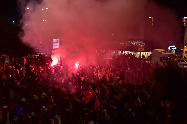Sandık sayımlarının tamamlanmasının ardından 'evet' oranının fazla olmasıyla birlikte partililer büyük bir sevinç yaşadı. Siyasiler ve vatandaşlar Cumhuriyet Meydanı'na akın etti, hep birlikte kutlama yapıldı, büyük coşku yaşandı. Havai fişek gösterisi ise gökyüzünü aydınlattı.