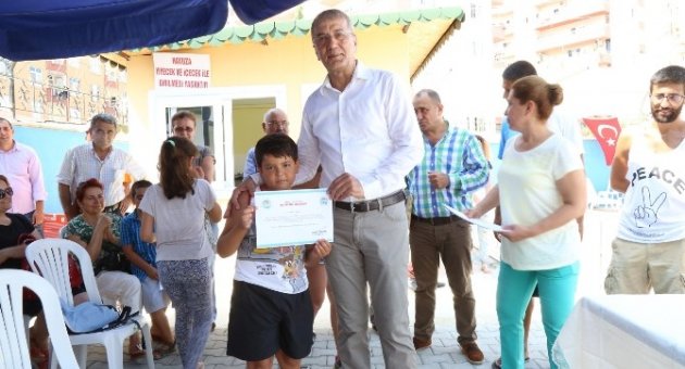 Mezitli Belediyesi Eğitim Havuzu’nda 7-14 yaş arası yüzme eğitimi alan kursiyerler üç haftalık eğitim sonunda sertifikalarını aldı.