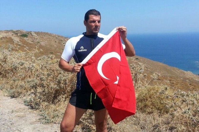 Milli yüzücü Alper Sunaçoğlu, Didim’den yaklaşık 7 kilometre uzaklıktaki Bulamaç Adasına yüzerek adada Türk Bayrağı açtı.