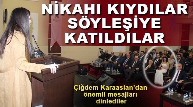 Türkiye'nin 2023 hedefini hatırlatan Karaaslan, ''Bu hedefe ilerlerken, tek başına siyasetçilerin karar alma mekanizmalarını hayata geçirerek ilerlemesi mümkün değil. Tek başına belli bir grubun gücü ile yapmak da mümkün değil. Bu ülke olarak hep beraber gideceğimiz bir yolculuk. Daha sonra 2053 ve 2071 inşallah şimdiden hayal ediyoruz. Bu hayale gerçeğe dönüştürecek adımları atmak konusunda özen gösteriyoruz. 15 Temmuz hain darbe girişimi sonrasında herkesin sorumluluğu çok farklı. Her meslek grubunun ayrı ayrı sorumluluğu var. Bunu çok önemsiyorum. Bu nedenle Muhasebeciler Haftası'nda yanınızdayız. Muhasebeciler ekonominin düzgün işlemesine aracı oldukları için hayati bir görev yapıyorlar'' dedi.AYDINLIK YARINLAR İÇİN EVET ''Önümüzde 16 Nisan gibi önemli bir dönem var'' diyen Karaaslan, ''Türkiye için hep daha iyisini isteyen bir kadro olarak bugüne kadar çıktığımız bu yolda alnımız çok ak bir şekilde ilerledik. Bir çok haksızlıkla karşılaştık. Bugün geldiğimiz noktada farklı bir mücadele içindeyiz. Gerek yurtiçinde, gerekse sınır ötesi operasyonlarla küresel terörle mücadele ediyoruz. Küresel ölçekteki yaşanan her şeyin panzehri, çözümü küresel işbirliğine geçtiğine inananlardanım. Bu sefer yalnızız. Birebir mücadele ediyoruz. Neden böyle bir dönemde acaba ekonomik beklentiler varken, zaten sistem ilerlerken böyle bir değişikliğine gerek duyuldu? Şimdi tam zamanı idi. Türkiye bu bakış açısı ile dar pencereden dünyaya bakarak devam edemez. Dünya hızla değişiyor ve dönüşüyor. Aynı şekilde Türkiye'de öyle. Bu hızlı değişim ve dönüşüm önünde mutlaka bir güncelleme yapmak zorundayız. 2007 yılında Cumhurbaşkanının halk tarafından seçilmesi noktasında alınan karar ile birlikte bu değişikliğin çok önemli hayata geçmiş oldu. Anayasanın 18 maddesindeki değişiklik meclisten geçti. Biz bunu halka sormak istiyoruz. Bir grup halka hata yapabilir diyor. Bize göre halk hata yapmaz. Bize düşen anlatmaktır. 16 Nisan'da Türkiye'nin geleceğine, aydınlık yarınlara evet diyeceğiz'' diye konuştu.EVLENDİLER SÖYLEŞİYE KOŞTULARGenel Başkan Yardımcısı Karaaslan'ın konuşması sırasında, yeni evlenen genç muhasebeciler Funda-Hakan Esirgene çifti, nikah salonundan söyleşiye katıldı. Genç çiftlerin salona girmesiyle önce şaşkınlık yaşandı, sonra başta Karaaslan, olmak üzere herkes tebrik etti. Genç çiftin önemli gördükleri toplantıda, mutlu günlerinde dahi yer almak istemeleri takdir gördü. Genç çifti tebrik eden Karaaslan, ömür boyu mutluluklar diledi.