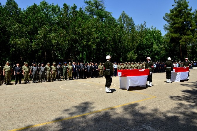 Şehitlerin özgeçmişlerinin okunması ile başlayan törende, İl Müftüsü Burhan İçleyen tarafından şehitler için dua okundu. Törende ayakta durmakta güçlük çeken şehitlerin yakınlarını Jandarma Genel Komutanı Orgeneral Abdullah Atay, 2. Ordu Komutanı Orgeneral Adem Huduti ve Diyarbakır Valisi Hüseyin Aksoy teselli etti. Törenin ardından şehitlerden Jandarma Astsubay Başçavuş İsmail Yavuz’un cenazesi Manisa’nın Salihli ilçesine, Jandarma Uzman Çavuş Mehmet Koçak’ın cenazesi ise Yozgat’a gönderilmek üzere askeri havaalanına uğurlandı.