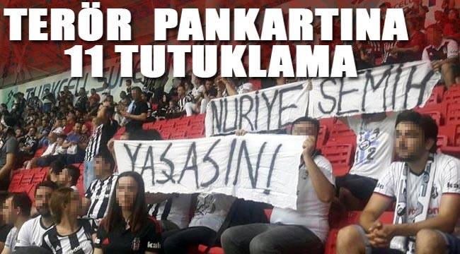 Samsun'da 6 Ağustos'ta Beşiktaş ile Konyaspor Süper Kupa maçı esnasında tribünde, halen cezaevinde açlık grevi yapan terör örgütü DHKP-C üyesi Nuriye Gülmen ve Semih Özakça'ya destek vermek için pankart açtıkları iddiasıyla gözaltına alınan 13 şüpheliden 11'i tutuklandı. Şüpheliler arasındaki avukat Ö.B. ve eşi E.B. ise nöbetçi mahkeme tarafından adli kontrol şartıyla serbest bırakıldı.Yeni 19 Mayıs Stadı'nda oynanan Süper Kupa maçında bir grup taraftar tarafından tribünde halen cezaevinde bulunan ve daha önce başlattıkları açlık grevlerini burada da sürdüren DHKP-C terör örgütü mensubu oldukları iddia edilen Nuriye Gülmen ve Semih Özakça'ya destek amaçlı 'Nuriye Salih Yaşasın' yazılı pankart açıldı. Şüpheliler, üzerlerinde saklayıp 3 parça halinde tribüne soktukları pankartı açtıktan sonra fotoğrafını da sosyal paylaşım sitesinden paylaştı.Olay üzerine Samsun Cumhuriyet Başsavcılığı talimatıyla Samsun İl Emniyet Müdürlüğü, Terörle Mücadele Şube Müdürlüğü ekipleri söz konusu şüpheliler hakkında 'terör örgütü propagandası yapmak' suçundan soruşturma başlattı. Yapılan soruşturmada kimlikleri tesbit edilen ve içlerinde avukat, devlet memuru ve öğrencilerin bulunduğu 17 şüpheli hakkında Samsun Cumhuriyet Başsavcılığı tarafından yakalama emri çıkartıldı.Şüphelilerden 13'ü Ankara'da yakalanıp gözaltına alındı. Polisteki işlemleri tamamlanarak Ankara Adliyesi'ne sevk edilen 13 şüpheli, SEGBİS sistemiyle Samsun Adliyesi'ne bağlanıp Cumhuriyet savcısına ifade verdi. Savcı, ifadelerini aldığı 13 şüpheliyi nöbetçi mahkemeye sevk etti. Nöbetçi mahkemede ifade veren şüphelilerden Duygu Uzun, Mehmet Mert Aydos, Ufuk Bıyık, Haydar Aktan, Anıl Çobanoğulları, Bilal Canberk Dönmez, Volkan Çalışkan, Erkan Akbaba, Didem Doğan, Cemil Doğan ve Özge Öznur Uysal'ın tutukalanarak cezaevine gönderilmesine karar verdi.Avukat olan ve Millli Eğitim Bakanlığı'nın avukatlığını da yapan Ö.B. ve serbest meslek sahibi eşi E.B. ise adli kontrol altında tutulmak kaydıyla serbest bırakıldı. Haklarında yakalama emri bulunan 4 şüphelinin ise yakalanması için başlatılan çalışmanın devam ettiği kaydedildi.TİŞÖRTÜNÜN İÇİNDE SOKMUŞÖte yandan 'terör örgütü probagandası yapmak' suçundan tutuklanan şüphelilerin savcılık ifadeleri ortaya çıktı. Şüphelilerden Ufuk Bıyık, Cumhuriyet savcısına, "Ben Beşiktaş'ın 'Beleştepe' taraftar grubu içinde yer almaktayım. Birlikte maçlara gidip sosyal aktiviteler düzenleriz. Samsun'da oynanan Süper Kupa maçına grup olarak geldik. Samsun'a gelirken mola yerinde ismini hatırlamadığım 5-6 kişi ile pankart açmaya karar verdik. Pankartın ne zaman ve ne şekilde hazırlandığına ilişkin bir bilgim yoktur. Pankartın 'Yaşasın' ibaresini içeren kısmını tişörtümün içinde ben stada soktum. Pankartı açtığımda yine bu kısmı tuttum. Pankartı tutan kişilerin isimlerini hatırlamıyorum. Stada girerken herhangi bir doğru düzgün arama yapılmadığı için bir sıkıntı yaşamadık" dedi.Tutuklanan şüphelilerden Duygu Uzun ise "Ben 'Beleştepe' taraftar grubu içersinde yer almam. Ancak Beşiktaş taraftarı olmam nedeniyle Ankara Kızılay'da bulunan bir kafeye nişanlım M.M.A. ile birlikte zaman zaman gidip maç seyrettiğim olmuştur. Bu nedenle söz konusu taratar grubundan tanıdıklarım vardır. Samsun'da oynanan Süper Kupa maçına da nişanlımla birlikte söz konusu taraftar grubuyla geldim. Yolda bir pankart mevzusu konuşuluyordu. Ancak ben maçlarda normal açılan pankartlardan olduğunu düşündüm. Bu nedenle de pankartın içeriğiyle ilgili ayrıntı sormadım. Maçtan önce pankart açıldı ancak pankartı kimin açtığını isim olarak hatırlamıyorum. Pankartı açan kişileri tanıyorsam isimlerini söyleyebilirim. Nişanlımla benim fotoğrafımızı çekmesi için telefonumu Ö.Ö.U. adlı kadın arkadaşıma verdim. O fotoğrafımızı çektiği sırada pankart açılmış. Yani bilerek pankartın önünde poz vermemiz ve fotoğrafını çekmemiz söz konusu değildir. Ben oturduğum yer itibarıyle geriye dönüp baktığımda pankartın sadece 'Yaşasın' yazan bölümünü gördüm. Daha sonra sosyal medyada pankartın tamamında ne yazdığını gördüm" diye konuştu.Tutuklalan şüphelilerden öğretmen olan Bilal Canberk Dönmez ise "Ben 'Beleştepe' taraftar grubu içinde yer alırım. Samsun'da oynanan Süper Kupa finaline bu grupla birlikte gittim. Statta maçtan önce hatırlamadığım bir kişiden aldığım pankartın bir parçasını tutuğum doğrudur. Yarım dakika ile bir dakika arasında pankart açık kaldı. Pankartın stada kim ya da kimler tarafından sokulduğundan bilgim yok. Samsun'a gelirken pankart açılacağına dair bir konuşmaya şahit olmadım. Daha önceden pankart açılacağına dair taratar grubu olarak bir karar alınmamıştı. Stat içerisinde pankartın bir kısmının bana uzaltıldığında duruma vakıf oldum. Pankartı açmakta suç kastıyla hareket etmiş değilim. Ben de öğretmenim. Pankartta ismi geçen kişileri içine düştüğü durum nedeniyle vicdanen rahatsızlık duyduğum için bu pankartı açtım. Pankartta ismi geçen kişilerin herhangi bir terör örgütüyle bağlantılı olduklarına dair bilgim yoktur. Ben bu kişilerin işsiz kalmaları ve açlık grevi yapmaları nedeniyle belirttiğim gibi vicdanen rahatsız oldum. Kaldı ki açılan pankartta herhangi bir terör örgütü övücü beyan yer almamaktadır" ifadelerini kullandı.Adli Kontrol şartıyla serbest bırakılan avukat Ö.B. ise ifadesinde şunları söyledi:"Ben Ankara'da Milli Eğitim Bakanlığı'nın avukatlığını yapmaktayım. Eşim ile birlikte bakanlığın lojmanlarında oturmaktayım. 'Beleştepe' taraftar grubuna dahil değilim. Ancak bu gruptan tanıdı