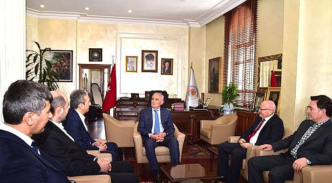 Belediye Başkanı Yusuf Ziya Yılmaz'ı ziyaret eden Terme Belediye Başkanı Şenol