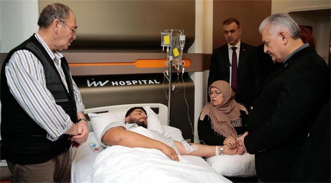 Başbakan Binali Yıldırım, İstanbul’daki terör saldırısında yaralananları tedavi gördükleri hastanede ziyaret etti. ‘Saldırgan Nobel Baba kıyafetli değil, terör hepimizin düşmanı’Başbakan Binali Yıldırım, terör saldırısında yaralananları hastanede ziyaret etti.Başbakan Binali Yıldırım, İstanbul’daki terör saldırısı ile ilgili, Başbakanlık Dolmabahçe Çalışma Ofisi'nde düzenlenen toplantının ardından Ulus'taki bir özel hastaneye geldi. Burada, hastane yetkililerinden bilgi alan Yıldırım, daha sonra terör saldırısında yaralananları ziyaret etti.Ziyaretin ardından basın mensuplarına açıklamalarda bulunan Yıldırım, dün akşam, yani 2016'yı 2017'ye bağlayan ilk saatlerde bir eğlence merkezinde savunmasız, sivil insanlara karşı alçakça bir silahlı eylem gerçekleştirildiğini söyledi.Türk ve yabancı uyruklu olmak üzere toplamda 39 masum, savunmasız insanın hayatını kaybettiğini belirten Yıldırım, saldırıda 60'ın üzerinde kişinin yaralandığını açıkladı.TERÖRÖ ASLA BOYUN EĞMEYECEĞİZTerörün insanlığın ortak derdi olduğuna dikkat çeken Başbakan Yıldırım, açıklamasını şöyle sürdürdü, “Terörle hiçbir yere varılmaz. Terörün amacı birliğimizi, beraberliğimizi, kardeşliğimizi zedelemek, emellerine ulaşmak için ortam hazırlamaktır. Türkiye bir süreden beri bölgede, hem bölücü terör örgütüne karşı, hem FETÖ terör örgütüne karşı, hem de Suriye ve Irak'taki otorite boşluğundan kaynaklı DEAŞ terör örgütüne karşı amansız bir mücadele veriyor. Bunun tabii bir karşılığının olacağını biliyoruz ama teröre asla ve asla boyun eğmeyeceğiz. Şu bilinmeli ki, bugün burada olan bu terör, dünyanın bir başka ülkesinde yarın olabilir. Bunun hiçbir garantisi yok. Dolayısıyla hiçbir ülke, bu terör olaylarından güvende değildir, 'Bizde terör olmaz' diyemez. Daha birkaç gün önce Almanya'da oldu. Evvelsi gün Irak'ta oldu. Daha önceki zamanlarda muhtelif ülkelerde oldu, oluyor. O yüzden bizim söylediğimiz bir şey var; terörün kutsalı olmaz, dini olmaz. Terör her yerde terördür. Terörle mücadelede çifte standart, terör mücadelesini başarıya ulaştırmaz, zafiyet oluşturur.”TERÖR BİZİ KORKUTAMAZ, BİZ TERÖRÜ KORKUTURUZ“Türkiye'nin Rusya ile birlikte Suriye'de önemli bir inisiyatif alması ve Suriye'de uzun süren savaşı sona erdirme yönündeki adımları, bunun daha sonra Birleşmiş Milletler tarafından tüm dünyaya şamil olarak kabul edilmesi, bölgede terörle mücadelede ciddi bir başarı anlamına geliyor” diyen Yıldırım, “ Bundan sonra bu ve buna benzer olaylarla bütün ülkeler karşılaşabilir, Türkiye'de de olabilir. Ama milletime, vatandaşlarıma ben şunu söylüyorum, terör bizi yıldıramaz, bizim kardeşliğimizi, birliğimizi, beraberliğimizi bozamaz. Terör bizi korkutamaz, biz terörü korkuturuz. Üzerine gitmeye amansız bir şekilde devam edeceğiz. Burada en büyük güvencemiz milletimizin bu kararlılık karşısında gösterdiği dayanışma ruhudur, kardeşlik ruhudur. Bu devam ettiği müddetçe üstesinden gelemeyeceğimiz hiçbir sorunumuz yoktur" ifadesini kullandı.