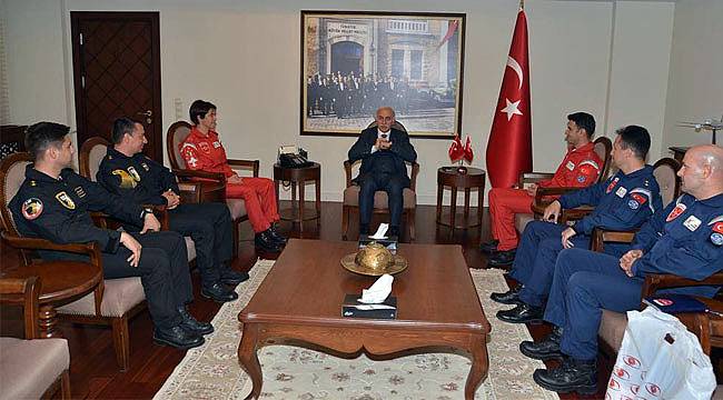 Türk Hava Kuvvetleri Akrobasi Timi ‘Türk Yıldızları ve Solo Türk Gösteri Ekibi' Samsun Valisi İbrahim Şahin'i ziyaret etti.